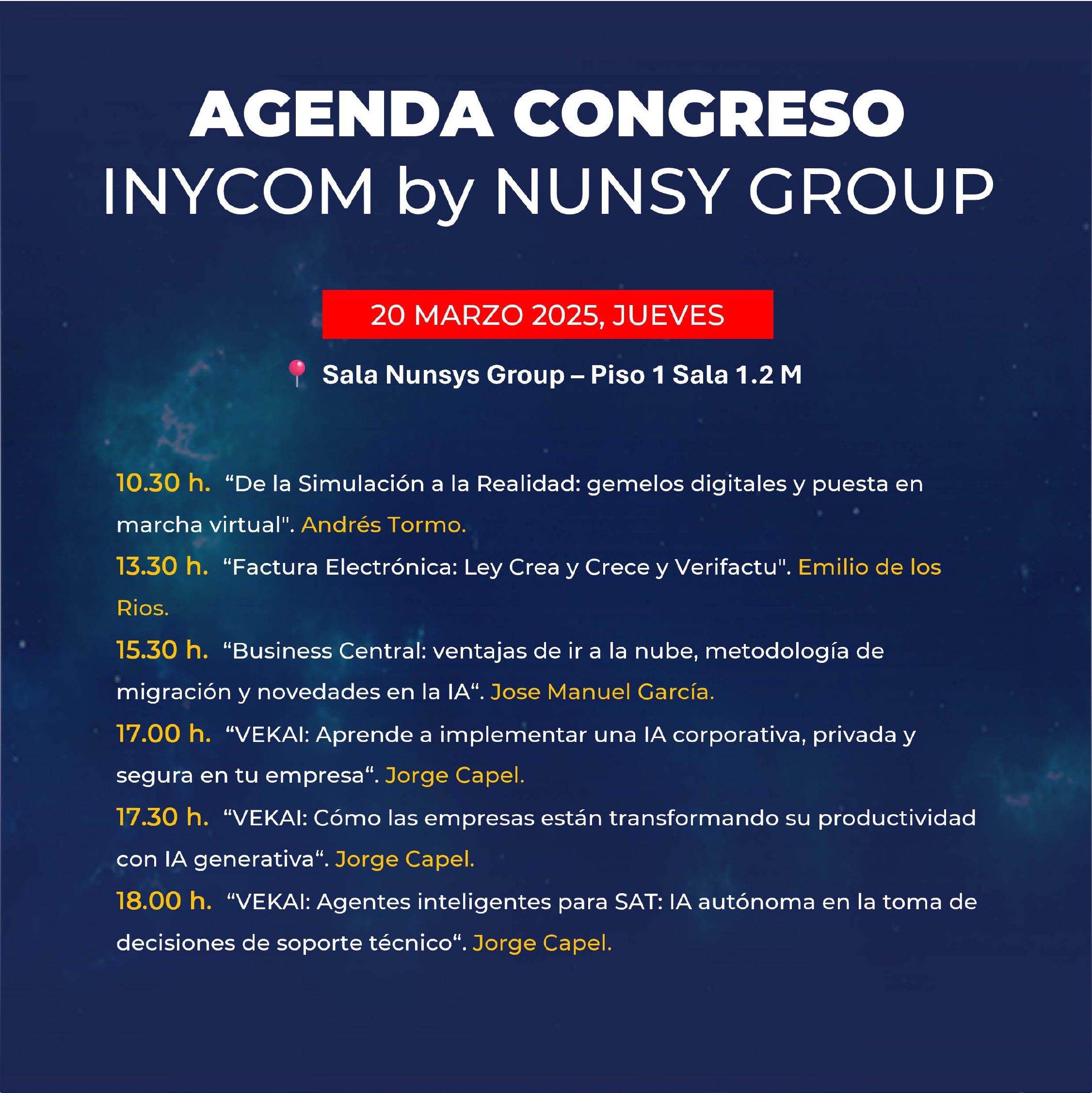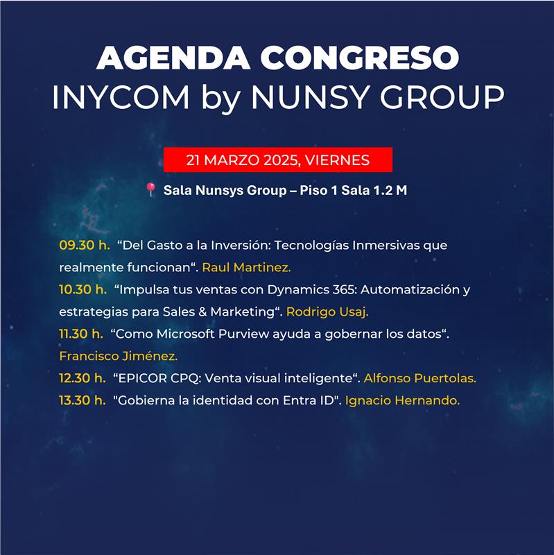 Iván Lalaguna, Director de Innovación en Inycom By Nunsys Group, y Marta Abad, Directora de Personas y Talento en Inycom By Nunsys Group, ofrecerán el día 21 a las 10.50 horas la ponencia Innovación local a escala global, visibilizando al talento joven y como desde Aragón trabajamos en proyectos con tecnologías de vanguardia, socios de múltiples países y clientes internacionales. Esta charla se suma a la presencia con el Stand W11 en la misma zona donde los curiosos podrán saber más de la empresa y lo que ofrecemos a los futuros profesionales del sector.