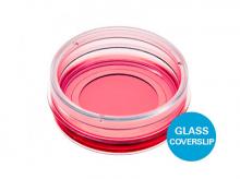Placa µ-Dish Ø 35 mm, pared alta (volumen de 2000 µl), cubreobjetos de cristal 1.5H (170 µm +/- 5 µm) D 263 M Schott glass. Estéril. Formato: 60 Uds./caja.