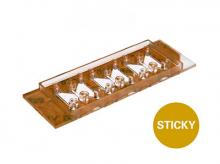 Un portaobjetos sin coverslip de quimiotaxis utilizado en aplicaciones 2D y 3D con una parte inferior autoadhesiva diseñada para permitir el autoensamblaje de un cubreobjetos de la elección del usuario. Formato: 10 Uds./caja.
