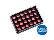 µ-Placa 24 pocillos, color negro, sin recubrimiento: cubreobjetos de polímero n. ° 1.5, hidrófobo. Esterilizado. Formato: 15 Uds./caja.