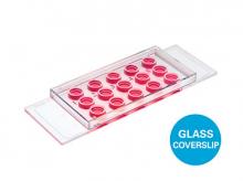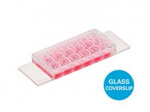 µ-Slide 18 Well con coverslip de cristal: cubreobjetos de cristal 1.5H (170 µm +/- 5 µm) D 263 M Schott glass, estéril. Formato: 15 Uds./caja.