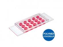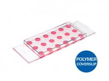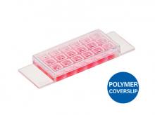 µ-Slide 18 pocillos sin recubrimiento: cubreobjetos de polímero n. ° 1.5, hidrófobo, estéril. Formato: 15 Uds./caja.
