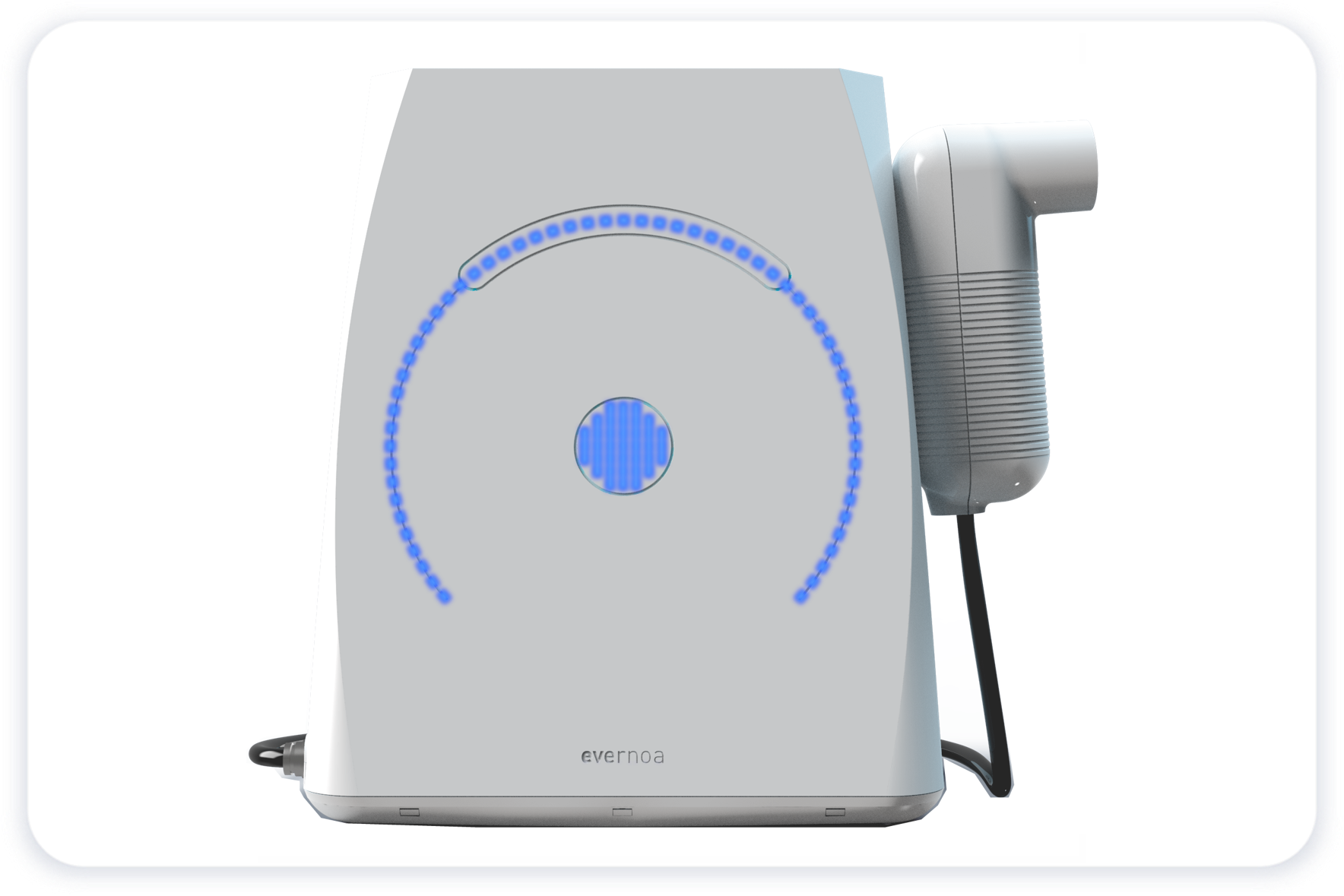 Evernoa permite medir la Fracción Exhalada de óxido nítrico (FeNO) presente en la respiración humana. Este biomarcador proporciona, de forma mínimamente invasiva, rápida y sencilla información relevante a cerca de la inflamación de la vía aérea, información útil en el diagnóstico y monitorización de enfermedades respiratorias con carácter inflamatorio, como puede ser el asma.